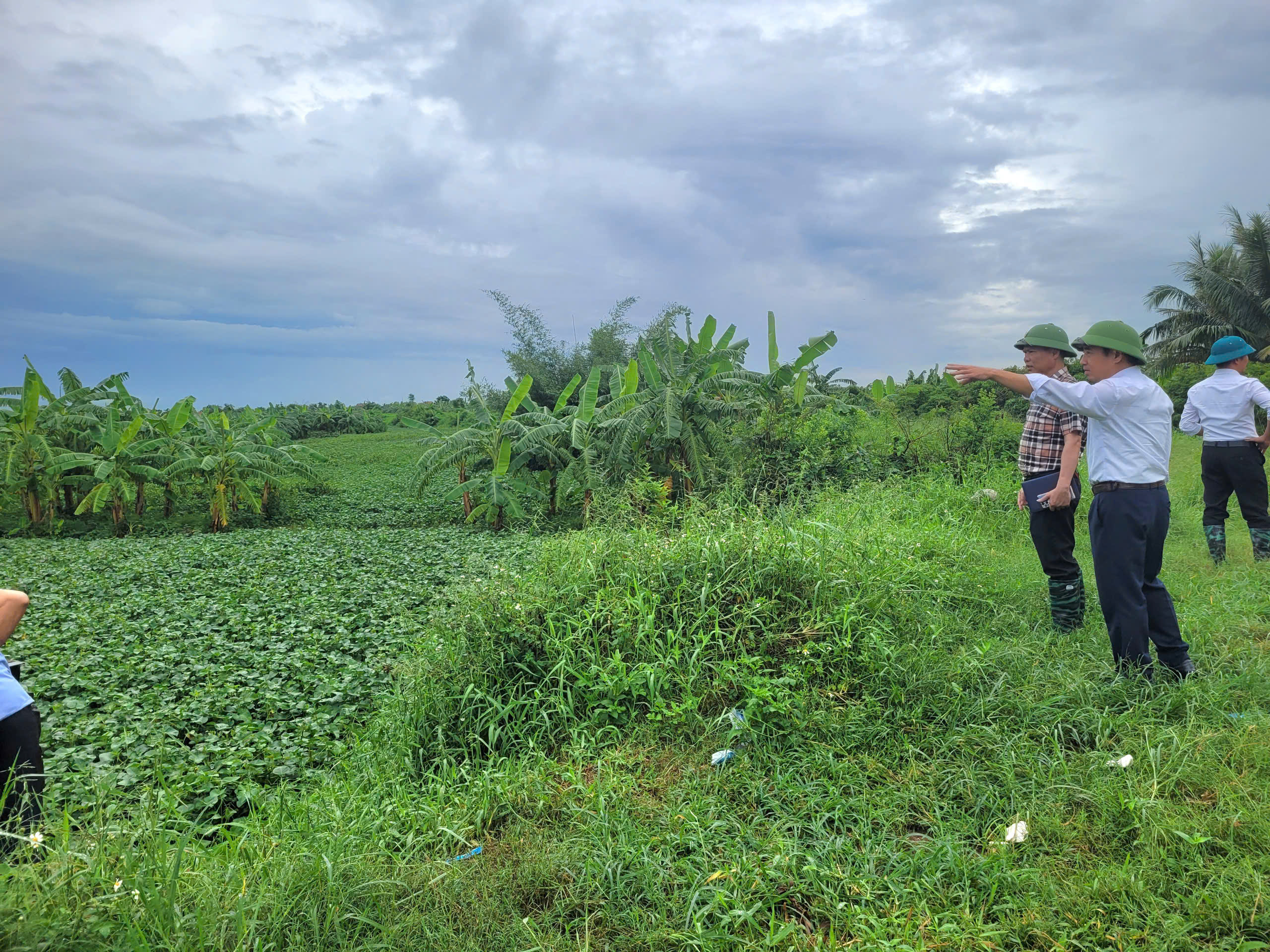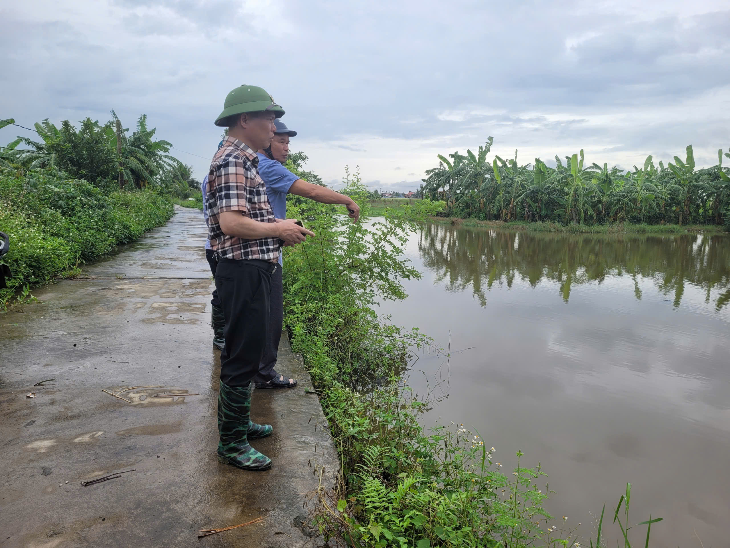 Đồng chí Bí thư Đảng ủy thăm đồng, kiểm tra công tác phòng chống úng cho lúa và rau màu.