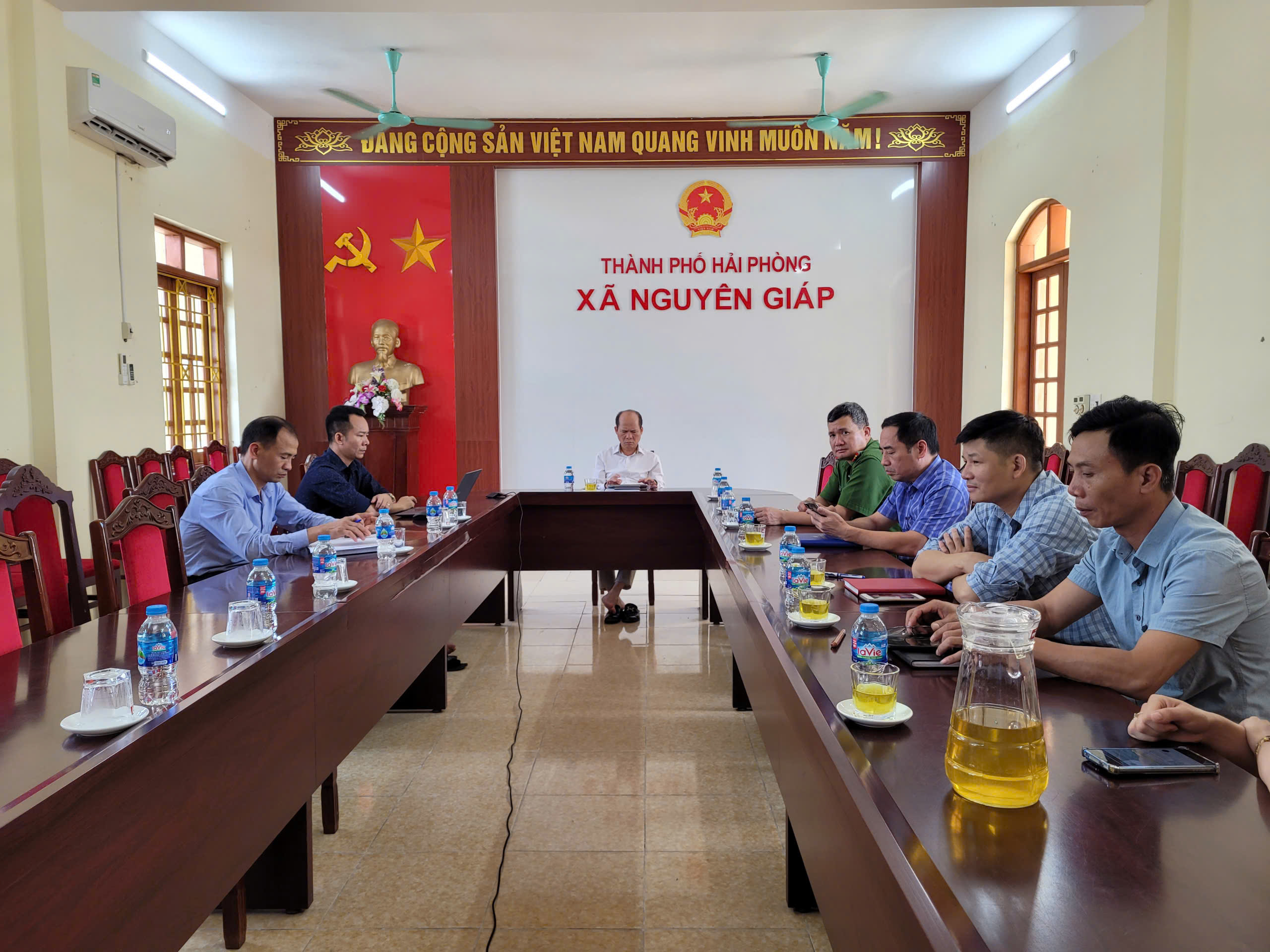 Dự tại điểm cầu xã Nguyên Giáp có đồng chí Trần Văn Sơn, Bí thư Đảng uỷ, Chủ tịch HĐND xã; đồng chí Trịnh Văn Hưng, Phó Bí thư Thường trực Đảng uỷ.
