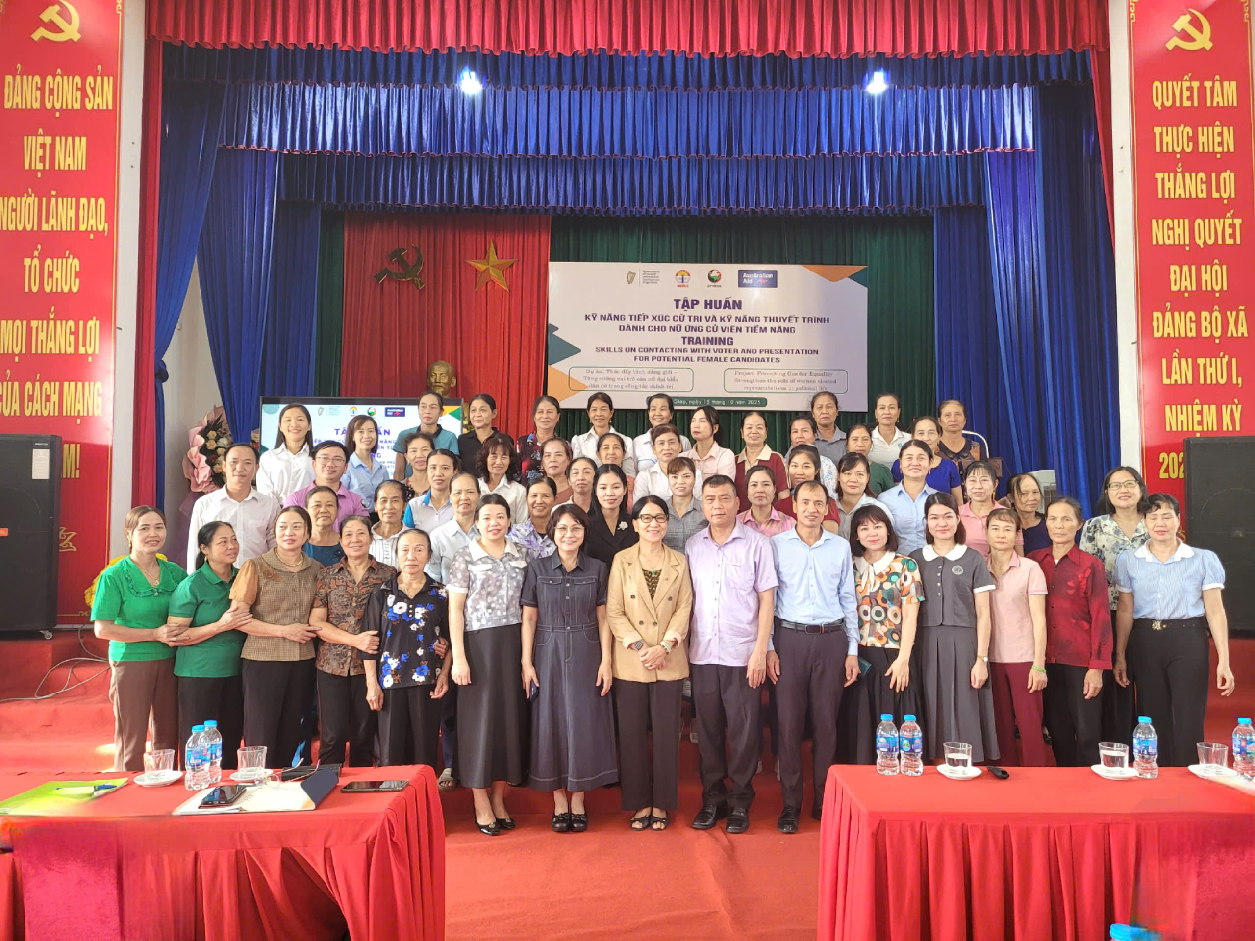 Sáng ngày 15/10, Hội LHPN xã Nguyên Giáp phối hợp với Trung tâm Giáo dục nghề nghiệp Hải Dương, Tổ chức Apheda (Úc) tổ chức khóa tập huấn “Kỹ năng tiếp xúc cử tri và kỹ năng thuyết trình” cho cán bộ nữ tiềm năng, nữ ứng cử viên Đại biểu Quốc hội khoá XVI và Hội đồng nhân dân các cấp nhiệm kỳ 2026 - 2031. Dự chương trình có đồng chí Lê Xuân Trường, Chủ tịch UBND xã.