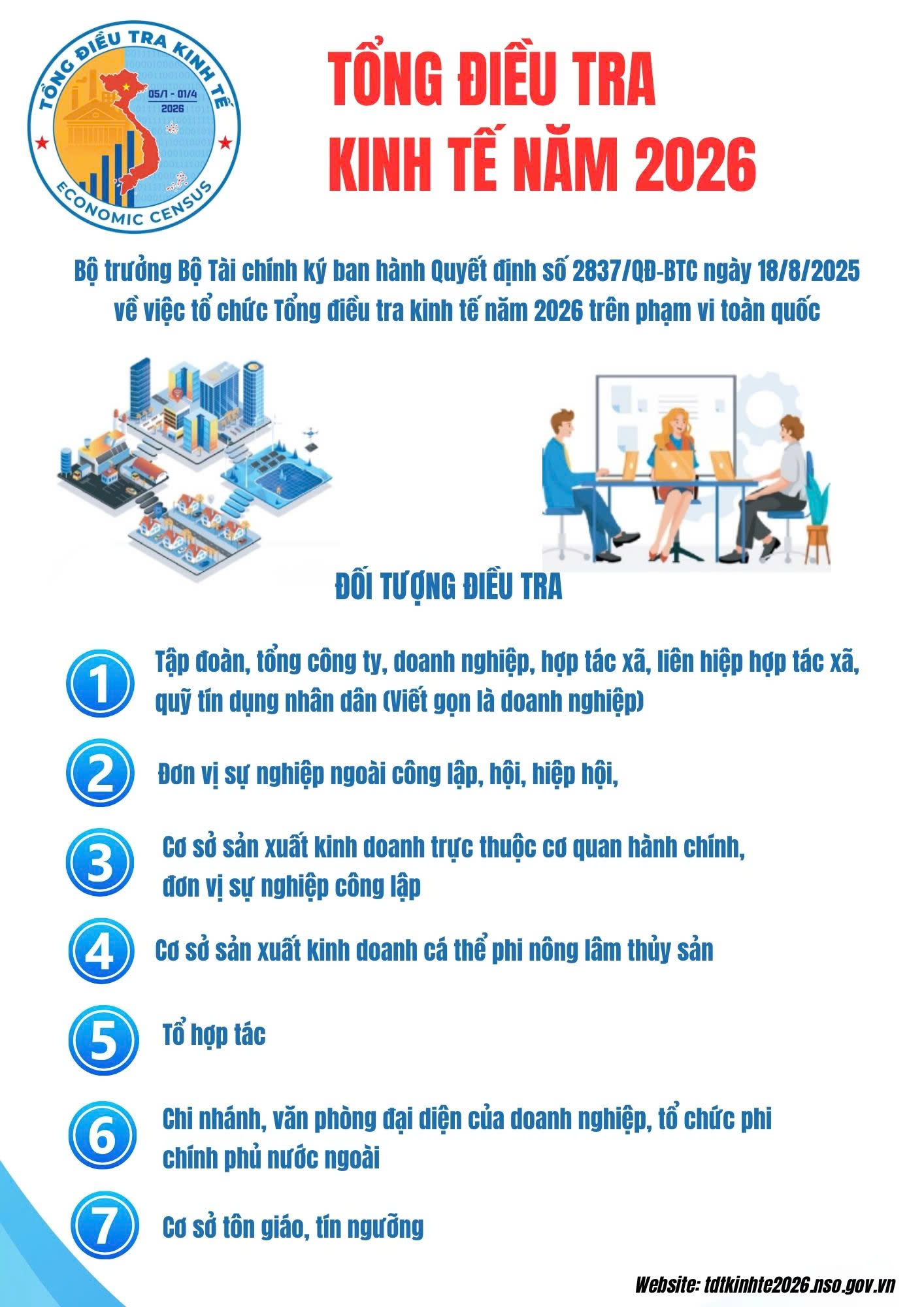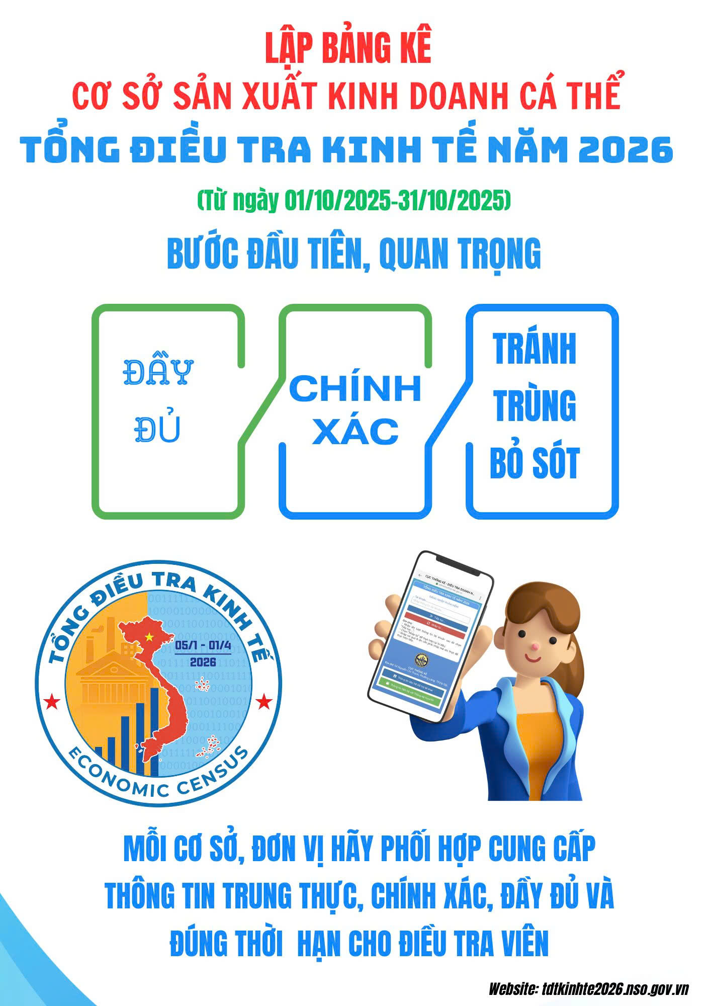 Tổng điều tra kinh tế năm 2026 từ ngày 01/10/2025 đến hết ngày 20/10/2025.